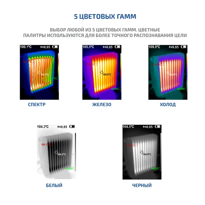 | Цветовая палитра | Spectra, Iron, Cool, White, Black (Радужный/железно-красный/холодный/горячий белый/горячий черный) |