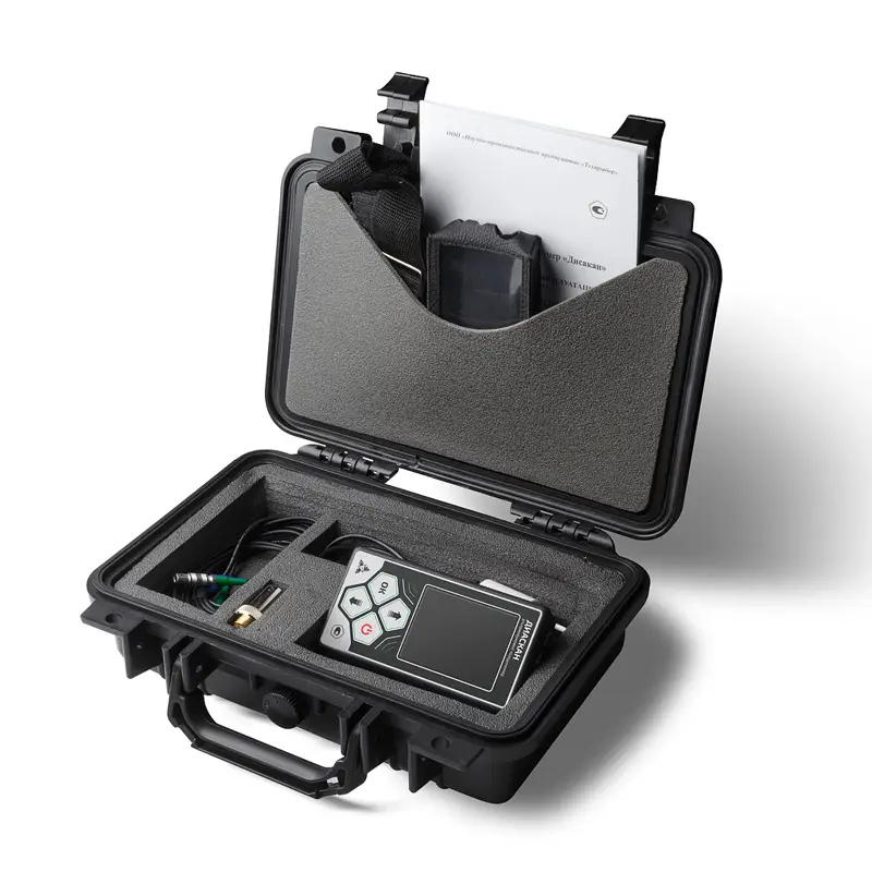 Предел допускаемой дополнительной абсолютной погрешности при измерении толщины изделий с шероховатой поверхностью со стороны ввода УЗК, мм: при шероховатости Rz=40 мкм при шероховатости Rz=80 мкм |
