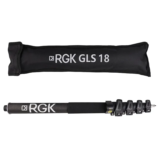 Легкая и прочная телескопическая веха RGK GLS18 из карбона. Компактность и легкость позволяют удобно перевозить веху, удобно при авиаперелетах. Размеры в сложенном виде всего 50 см, в рабочем положении – до 1,8 м.